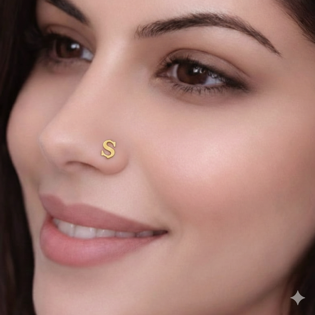 Delicate & Feminine Charm: Elevate your look with the Alphabet nose pin, designed for Artisanal Enthusiasts. Check more designs in our store.