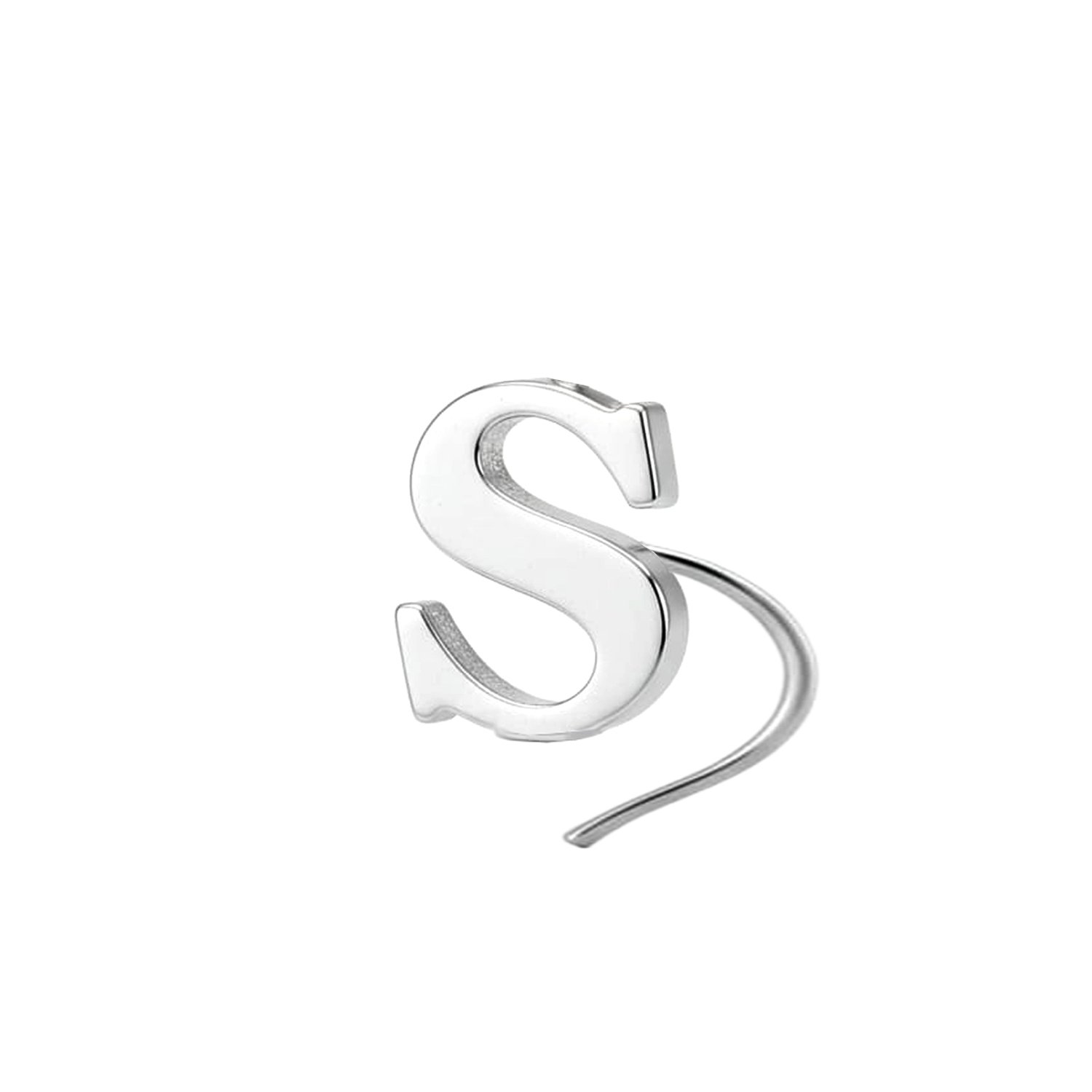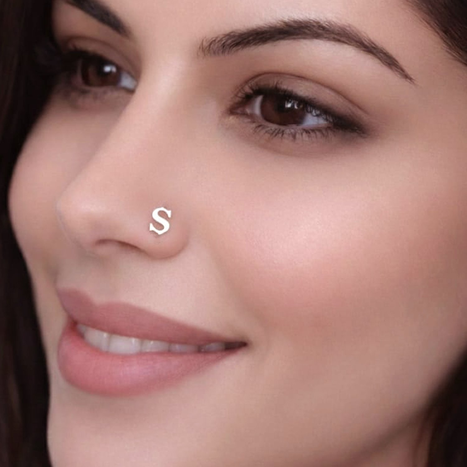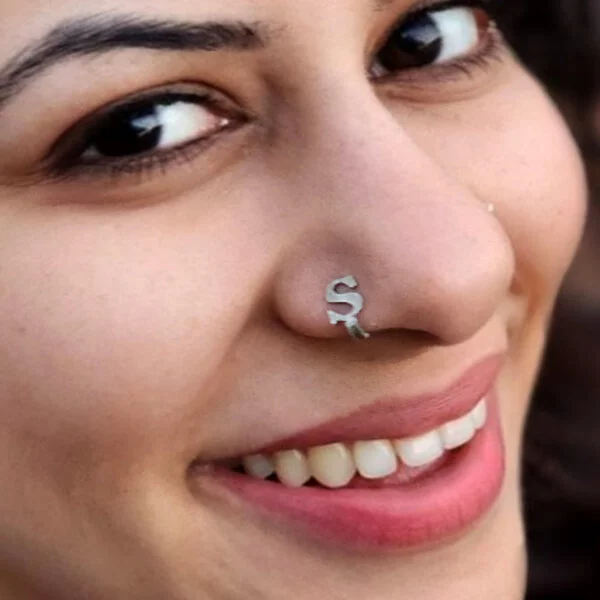Alphabet S Design: Embrace yourself with personalised alphabet S Modern Small Silver Nose Pin. Adding sophistication to your style. Meticulously crafted for a feminine look. CLICK TO SEE MORE DESIGNS