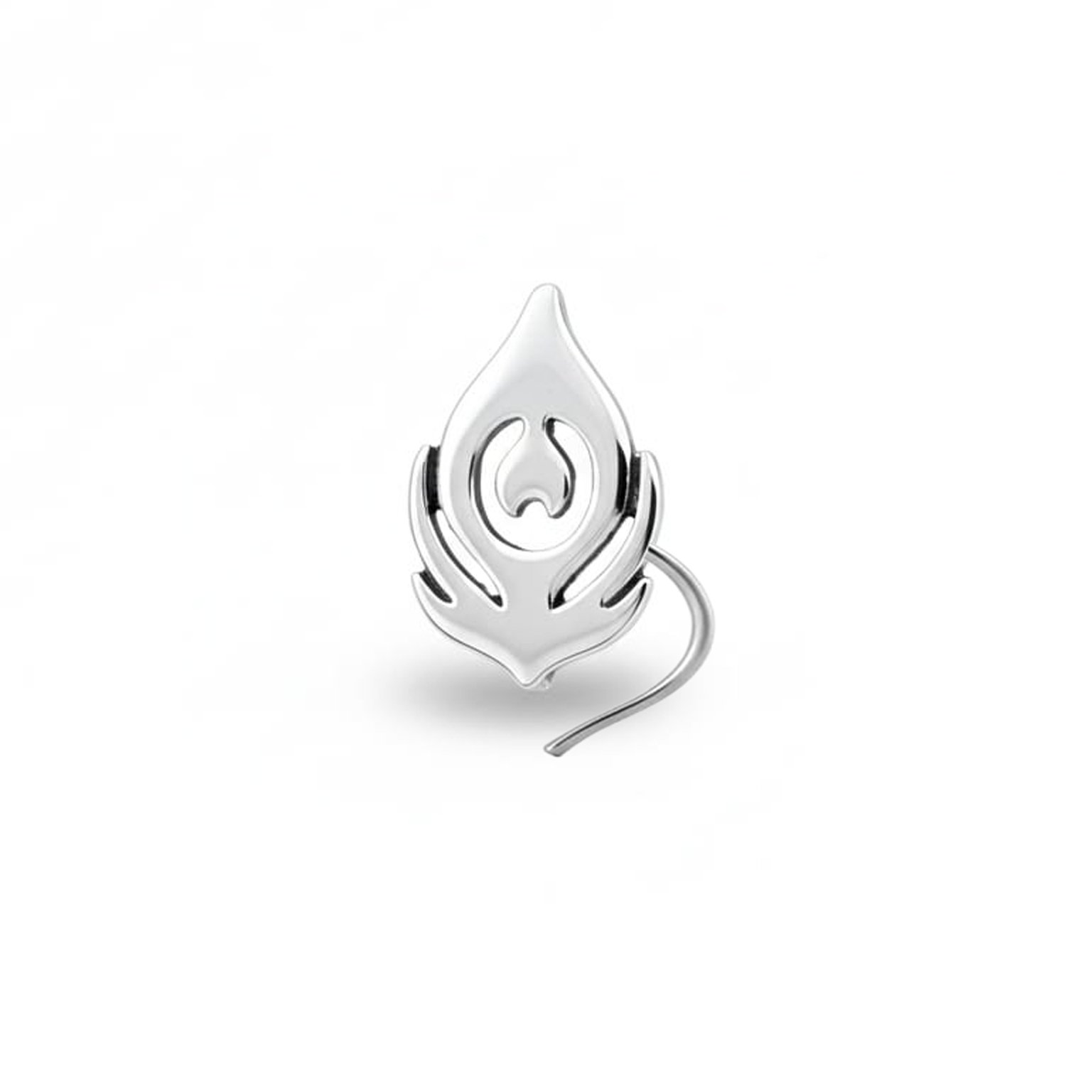 This silver nose pin from Metalsmith Benchman is a piece of art. The design is intricate and the quality is top-notch.