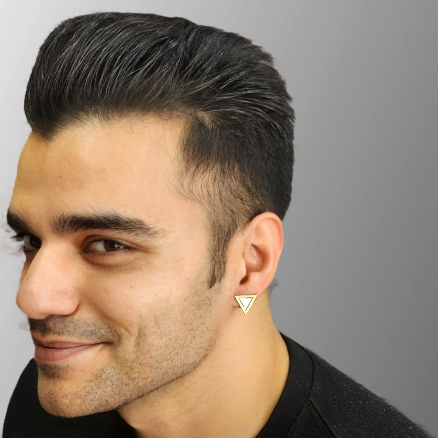 Introducing the Downward Triangle Water Element silver ear studs for men – a captivating fusion of elemental symbolism and artisanal craftsmanship, meticulously crafted for the discerning aficionados of refined style. These exquisite earrings transcend mere adornment, embodying the fluidity and grace of water. Perfect for men who seek to express their individuality with sophistication, the Downward Triangle Water Element Men’s Earrings are a testament to craftsmanship and timeless elegance, making them an essential accessory for every modern enthusiast of refined style.