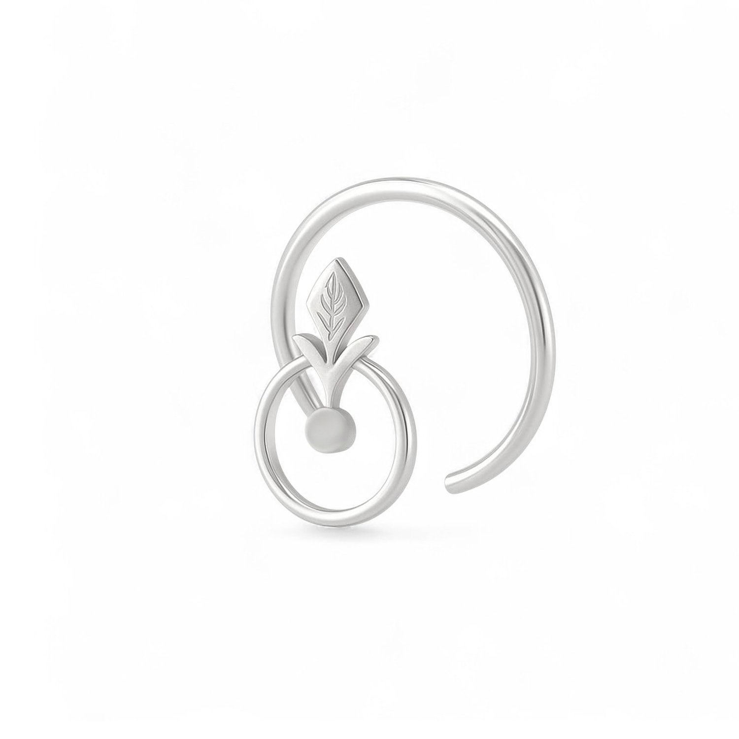This silver nose pin from Metalsmith Benchman is a piece of art. The design is intricate, and the quality is top-notch.