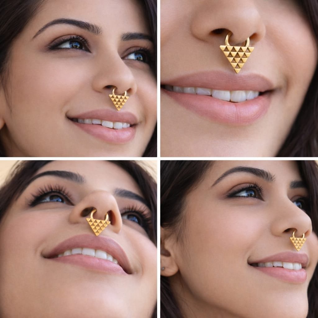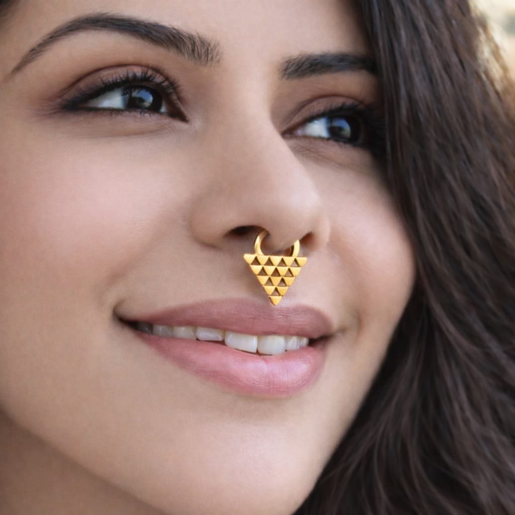 - 925 Silver or Golden Brass Metal: The Septum comes in silver and golden brass Metal options. eye-catching element that enhances its beauty.